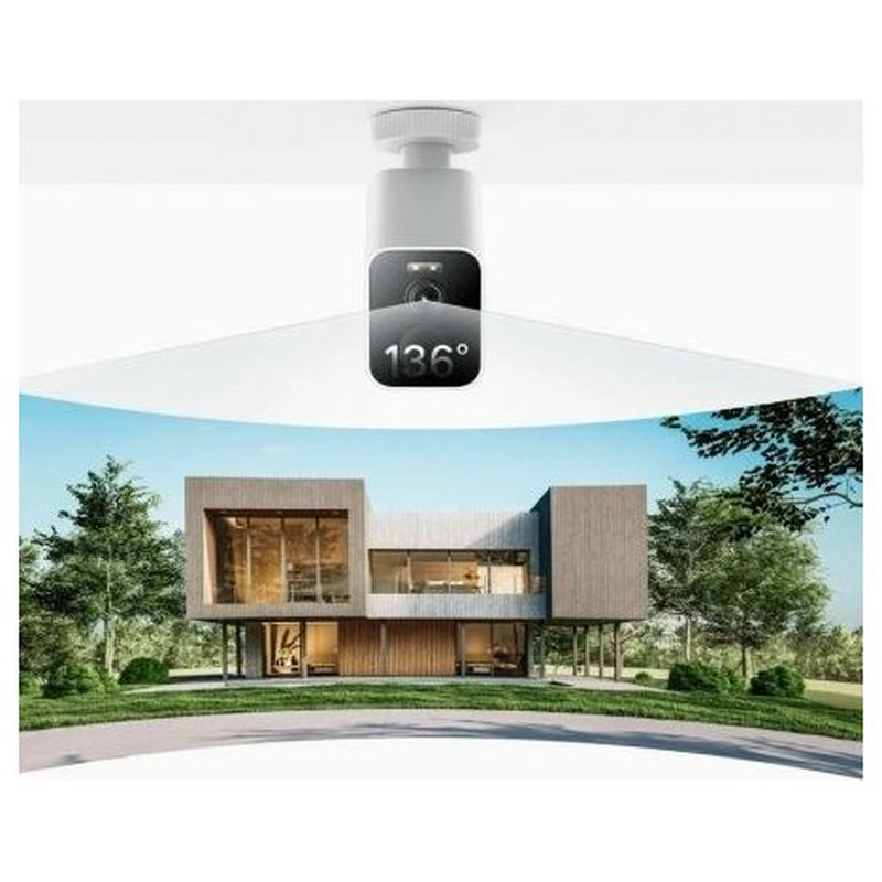 La cámara cuenta con una lente gran angular de 136° para un campo de visión más amplio que reduce los puntos ciegos y mejora su seguridad con imágenes más claras y secuencias más completas.