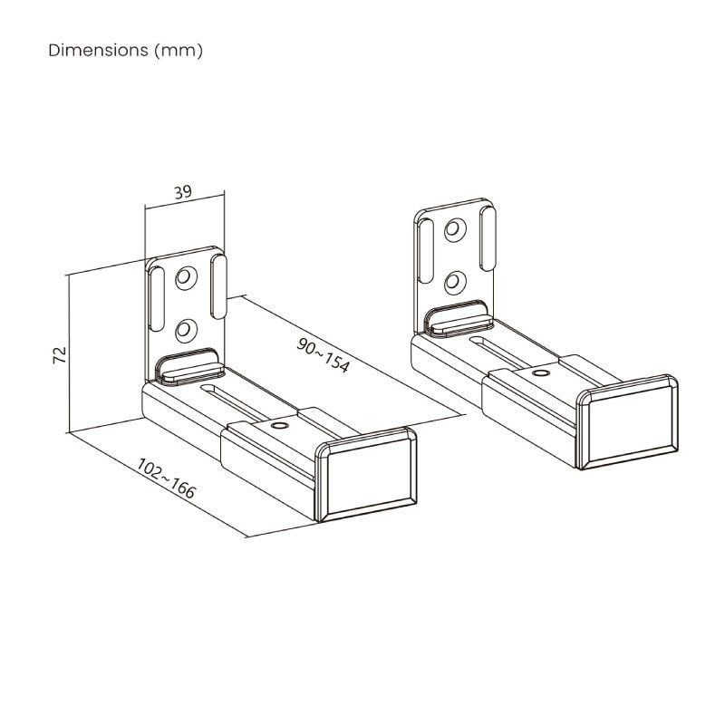 - Este soporte se adapta a barras de sonido con una profundidad de entre 90 y 154mm.