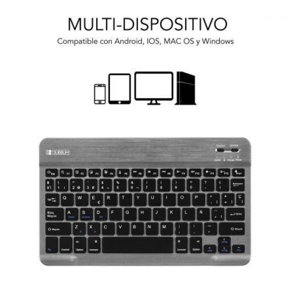 Especificaciones:. . Diseño ultradelgado. Teclas de alta precisión. Ahorro de energía. Conector BT y encendido. Batería Li-ion recargable. Soft Touch. Voltaje funcionamiento 3.7v. Corriente de trabajo <5mA. corriente en espera <1mA. tiempo en espera: 40-45 días. Tiempo de trabajo: 30 horas. Vida de las teclas: 5 millones de presiones. Batería 420mAh. . Requerimientos sistema:. . PC: Windows 7 / 8 / 10. Mac: Mac OS X 10.10 o superiores. Android Tablet PC o Smartphone. apple iPad / iPhone IOS 5 o superior. Apple TV. . *Para el correcto funcionamiento debe sincronizar el teclado al Sistema Operativo en uso, mediante la combinación de teclas:. FN + A / FN + S / FN + D. .