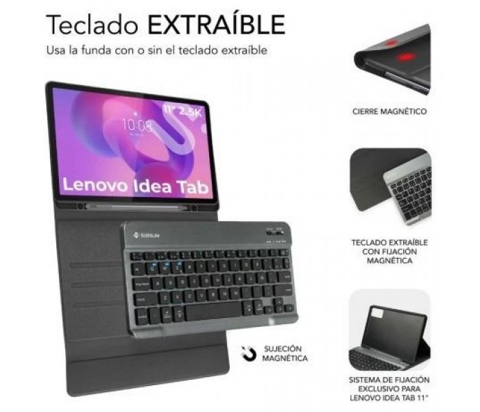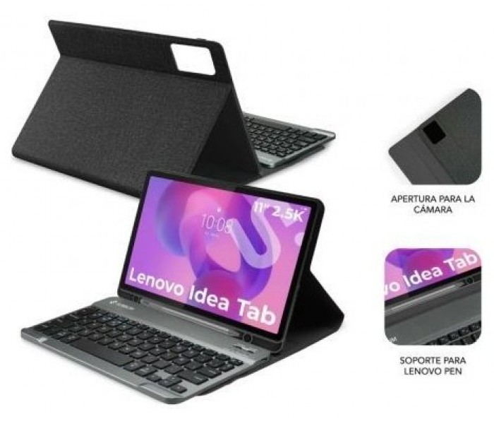 Alta protección y mínimo espacio gracias al diseño ultrafino de esta funda con teclado Bluetooth exclusiva para la Tablet Lenovo Tab M11.
