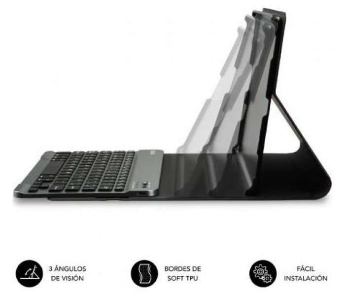 acopla o retira el teclado al instante y aprovecha el kick-stand 175° de la Tab Plus para un ángulo de 15-60° estable, ideal para escribir, dibujar o ver series.