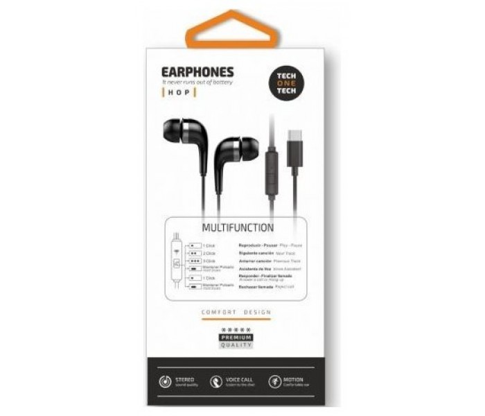 Auriculares soft HOP earTECH ergonómicos, sonido estéreo, con micrófono, controles de volumen y tercer botón multifunción.