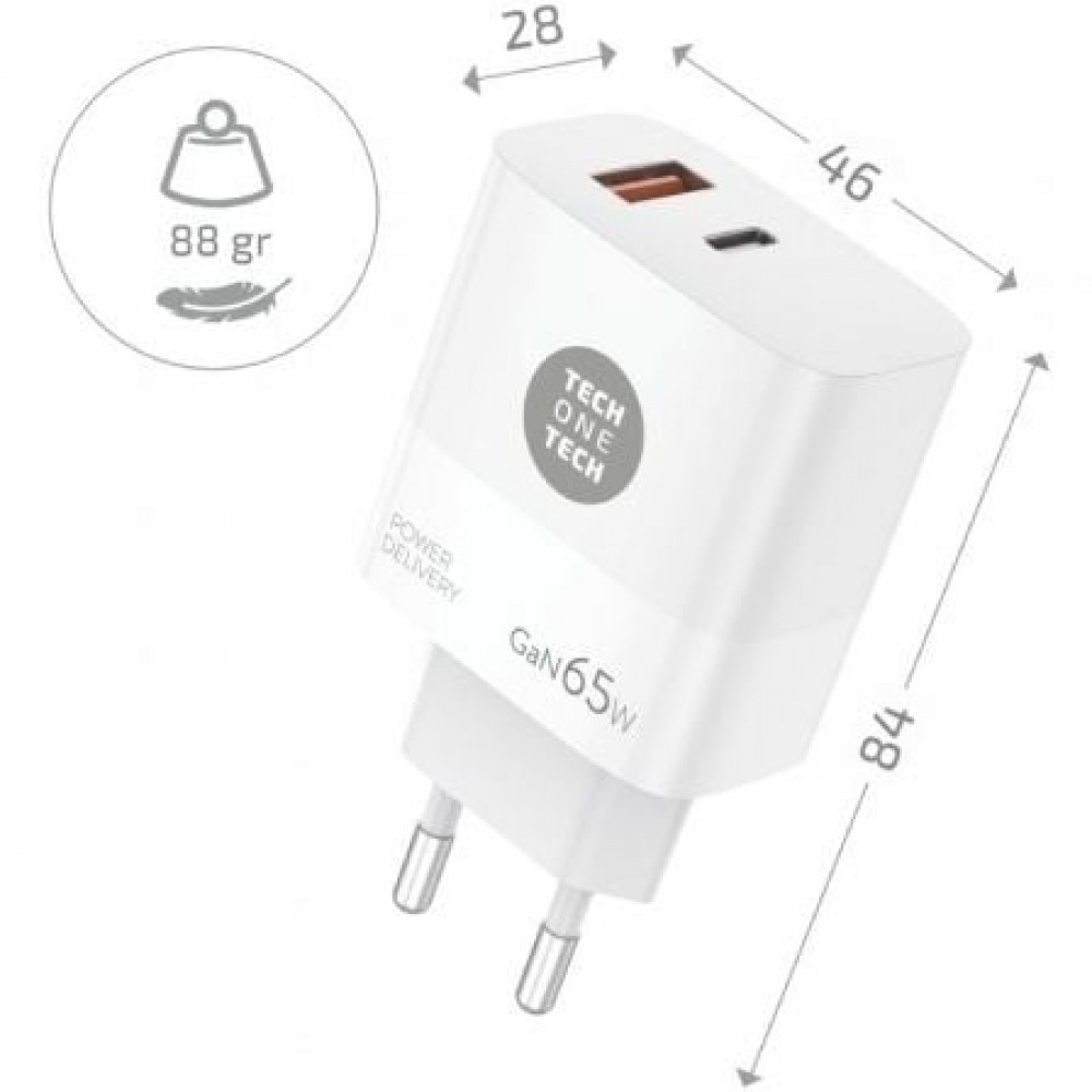 - Salida total: 65W (USB-A+USB-C)