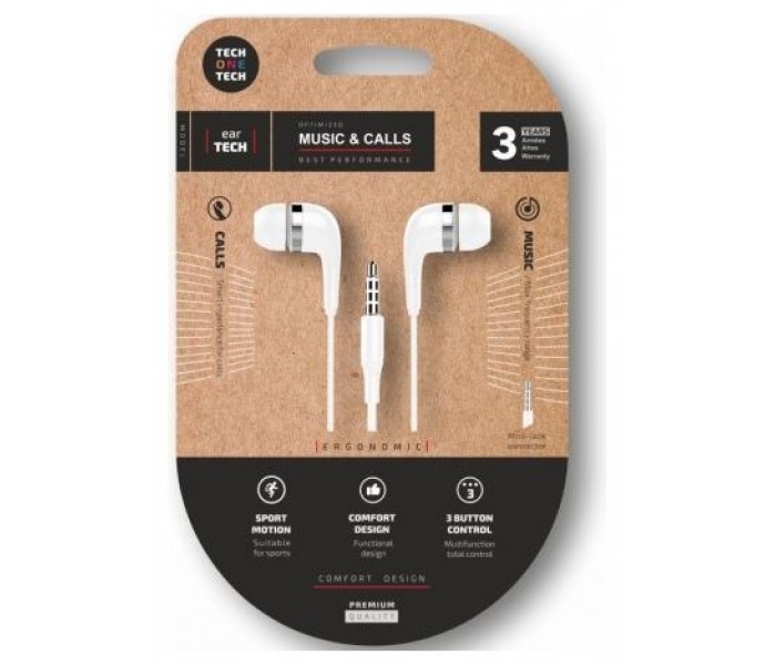 Auriculares soft earTECH ergonómicos, sonido estéreo, con micrófono, controles de volumen y tercer botón multifunción.