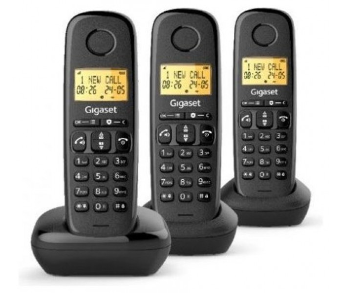Teléfono Inalámbrico Gigaset A170 Pack TRIO/ NegroTeléfono Inalámbrico Gigaset A170 Pack TRIO/ NegroCaracterísticas:lista de llamadas de hasta 25 entradasremarcación de los últimos 10 númerosindica la fecha y hora además de la función de alarmateclas fáciles de usar con puntos sensibles a la presión..