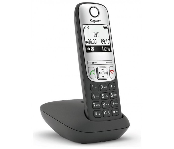 | Características | General - Terminal, alt x anch x prof en mm: 155 x 49 x 28- Conexión: Analógico - Standares DECT: DECT, GAP - ECO DECT: Reducción automática de transmisión de energía, Libre de radiación en modo standby, Bajo consumo de energía Características adicionales - Tiempo en modo en espera hasta (h): 180 - Tiempo de conversación hasta (h): 14 - Número de registros en agenda telefónica (nombre/número): 100 - Función de alarma: Si - Call block function: Si - Blacklist (number of entries): 32 - Anonymous call suppression: Calls without CLIP number are only indicated visually: Si - Day / night mode: Timed ringtone deactivation on handset: Si - Señalización óptica de llamada (pantalla iluminada): Pantalla iluminada, La tecla de llamada parpadea - Número de terminales ampliables: 4 - Llamadas internas gratuitas: Si - Transferencia de teléfonos/libreta de direcciones interna a través de DECT (de terminal a terminal): Si - Transferencia interna de llamadas externas, llamada de conferencia, devolución de llamada: Si Sonido - Conversación manos libres: Sí - Conversación manos libres terminal / baset: Terminal - Volumen ajustable: Mediante el Menú - Número de tonos: 20 Teclado - Teclado iluminado: Si - Manejo sencillo con teclas de navegación: Si - Tecla de mensajes: Si Dimensiones y Peso - Terminal, peso incl. batería en g: 119 - Estación base, alt x anch x prof en mm: 44 x 88 x 105 - Estación base, peso en g: 70 - Cargador, alt x anch x prof en mm: 38 x 70 x 77 - Cargador, peso en g: 36 - Batería: 2 x NiMH AAA |