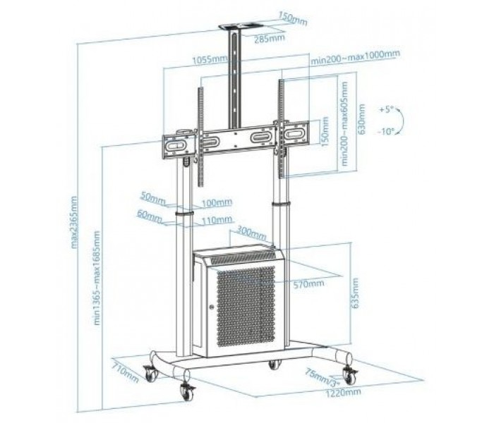 Soporte de Suelo Inclinable con Ruedas TooQ Narnia FS20500M-B