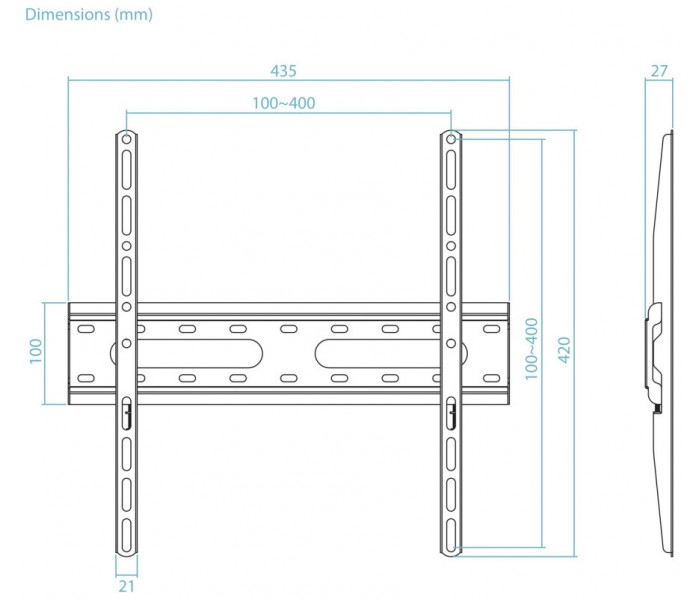 - Compatible con VESA: 75x75, 100x100, 100x150, 150x100, 100x200, 200x100, 150x150, 200x200, 300x200, 400x200, 300x300, 400x300, 400x400