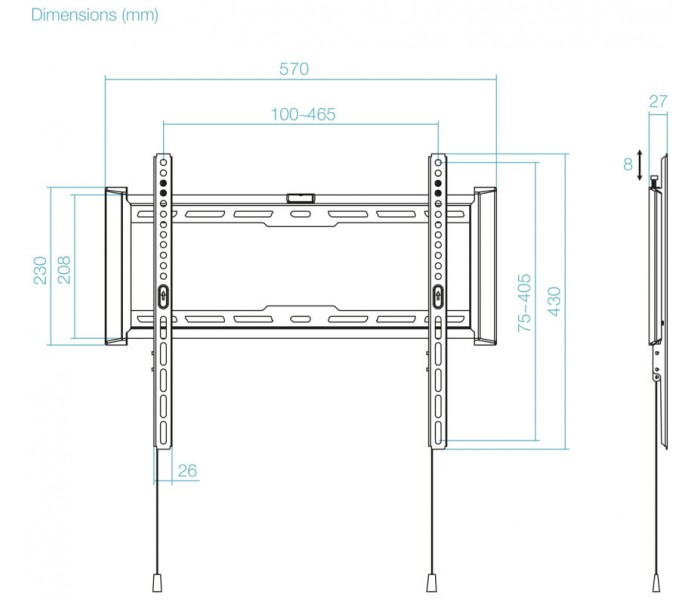 Soporte Fijo de pared para pantallas 32"- 70", Negro