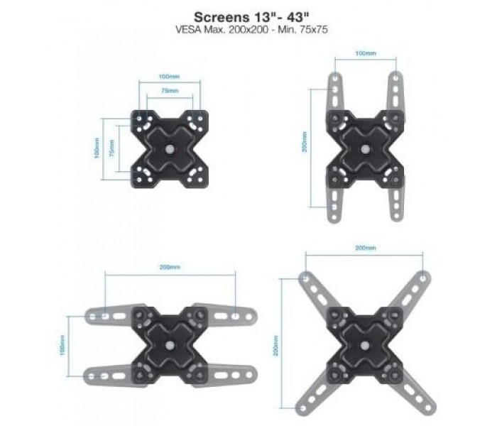 Compatible con VESA: 75x75, 100x100, 100x200, 200x100, 200x200