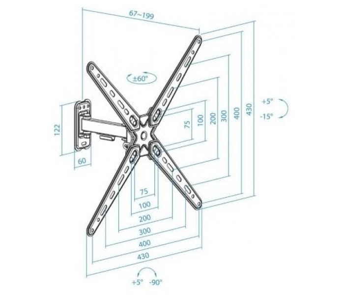 Soporte de Pared Extensible/ Giratorio/ Inclinable TooQ LP1344TN-B para TV de 13-43"/ hasta 20kgEspecificaciones Pantallas soportadas: 13"-43" Compatible con VESA: 75x75, 100x100, 100x200, 200x100, 200x200 Peso máximo soportado de pantalla: 20 kg Ángulo de inclinación: +5°/-15° Ángulo de giro: ..