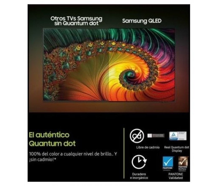 Los televisores QLED tienen la certificación RoHS y el Instituto Mundial de Certificación SGS que ha verificado que los televisores Samsung no contienen cadmio.