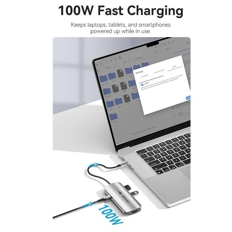 Docking USB Tipo-C Vention TQHHB/ 1xHDMI 4K/ 3xUSB/ 1xUSB Tipo-C PD/ 1xRJ45/ GrisVention Estación de acoplamiento USB-C 6 en 1 Red Gigabit Salida de pantalla HD 4K Velocidad de transferencia de datos estándar de 5 Gbps Puertos ampliados, no más conexiones repetidas Carga PD de 100 W ..