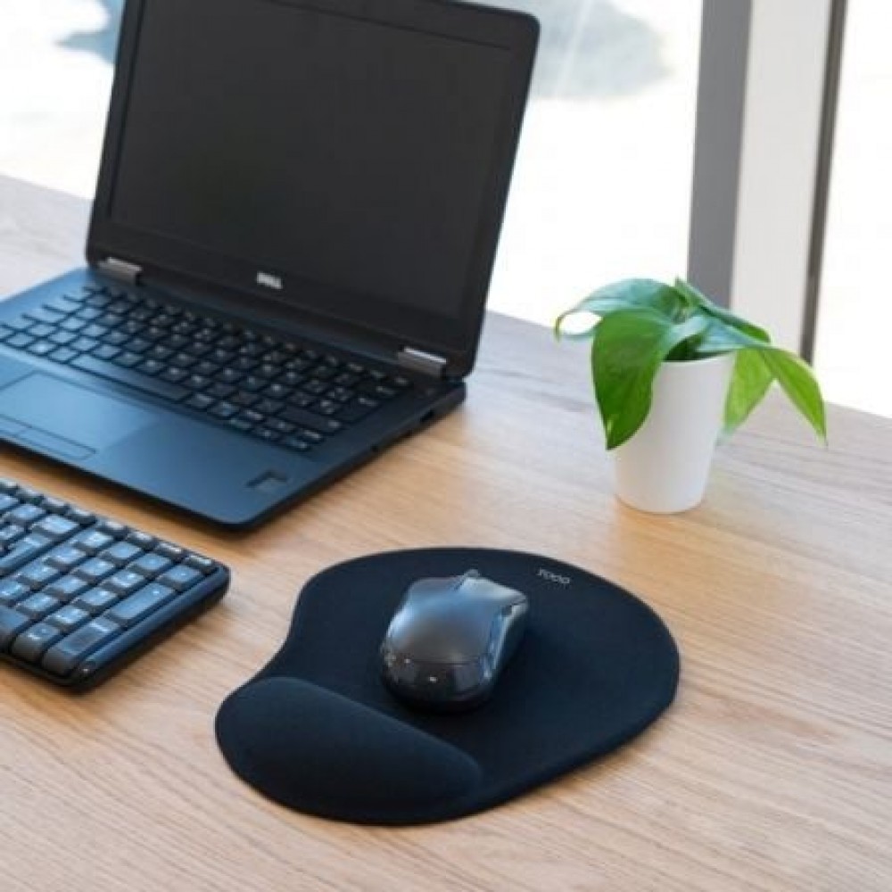 - Reposamuñecas de gel de alta densidad: proporciona soporte ergonómico, reduce la presión en la muñeca y previene la fatiga. .