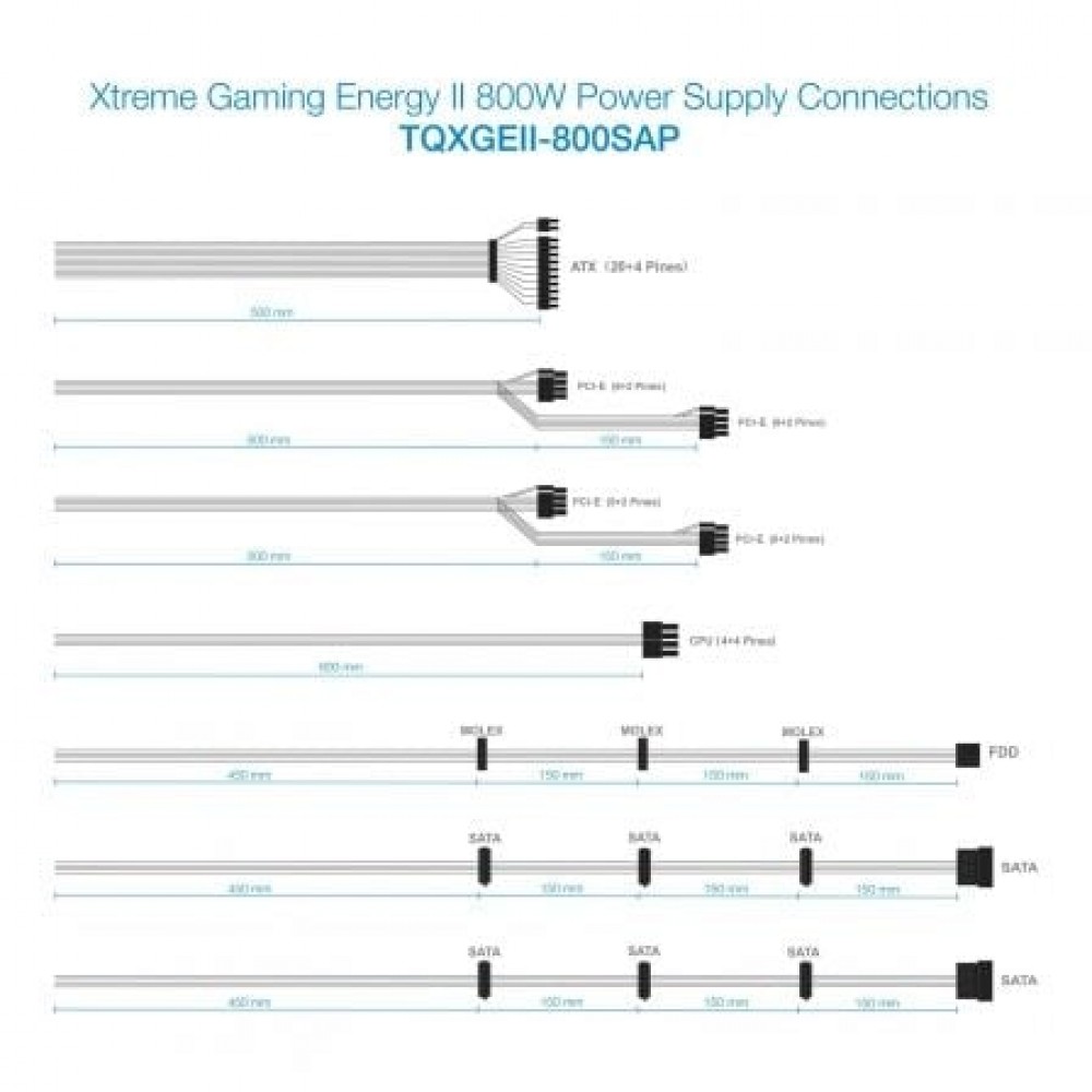 La serie gaming XGE II de TOOQ está diseñada para jugadores muy entusiastas y configuraciones exigentes. Esta serie de fuentes de alimentación de alto rendimiento lleva el certificado 80 PLUS BRONZE, por lo que se garantiza más del 82% de eficiencia. La poderosa salida +12V garantiza la alimentación de microprocesadores y GPU multi-núcleo de última generación. Esta fuente incorpora un ventilador con luz LED azul APAGABLE para adaptar a las necesidades de cada usuario. El ventilador lleva rodamientos fabricados con doble cojinete de bolas, con lo cual tiene una vida útil exageradamente larga (más de 20 años de vida útil con uso de 10 horas diarias). Sabemos que los jugadores exigentes usan torres altas, por lo tanto, esta fuente incorpora cables extra largos y mallados para que los jugadores monten su equipo tranquilamente sin sorpresa. En conclusión, es el “corazón” potente y perfecto para empujar su súper configuración de equipo.