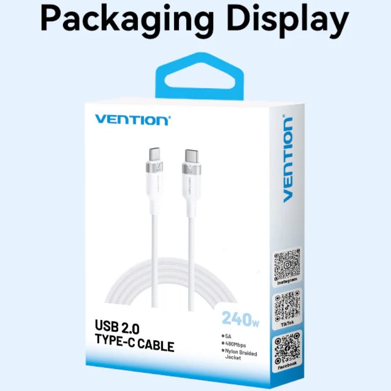Vention Cable USB-C 5A 240W Carga rapida 1m TRISF Alu Azul