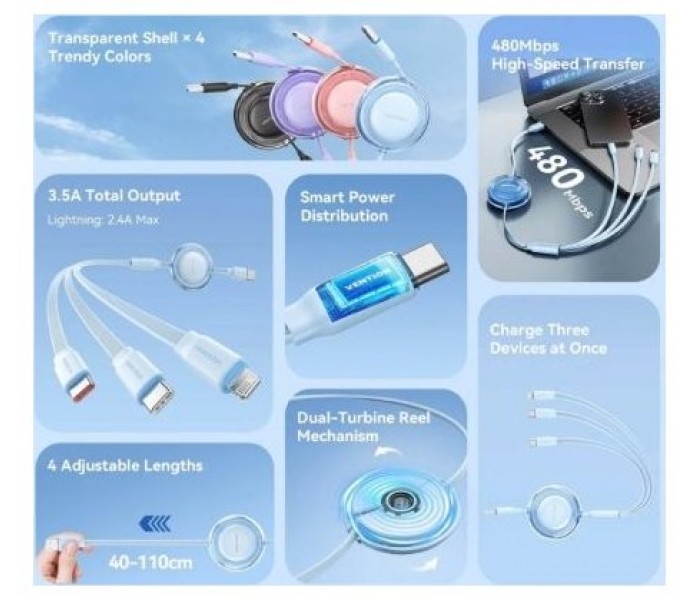 - Nombre: Cable de carga retráctil USB 2.0 3 en 1