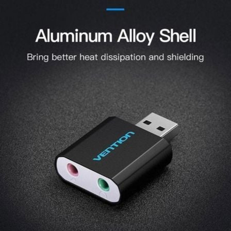 Tarjeta de Sonido Vention CDNH0/ 2.1/ GrisColor: gris oscuro. Material exterior: aleación de aluminio + ABS. Tecnología de interfaz: chapado en oro. Tipo de interfaz: USB 2.0 macho, hembra de 3,5 mm. Versión de interfaz: USB2.0. Frecuencia de muestreo: 44,1/48 K a 16 bits. Canal de sonido: 2.1 canal..