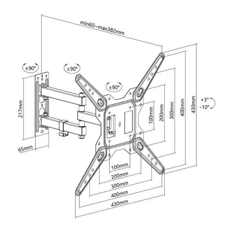 - VESA Máximo: 400x400mm (Compatible con VESA de 100x100, 100x200, 200x100, 200x200, 300x200, 400x200, 300x300, 400x300, 400x400mm)