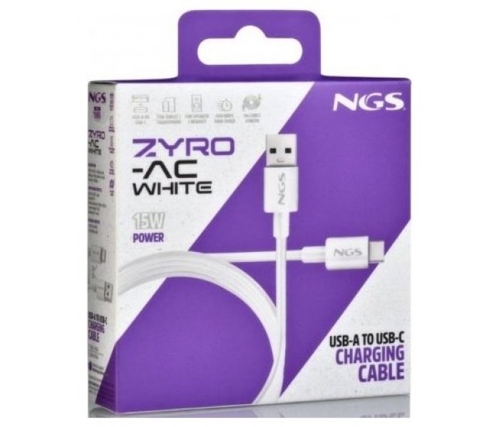 Cable de carga rápida USB-A a USB-C. Transmisión de datos: 480 Mbps USB 2.0. 1 metro. 15W